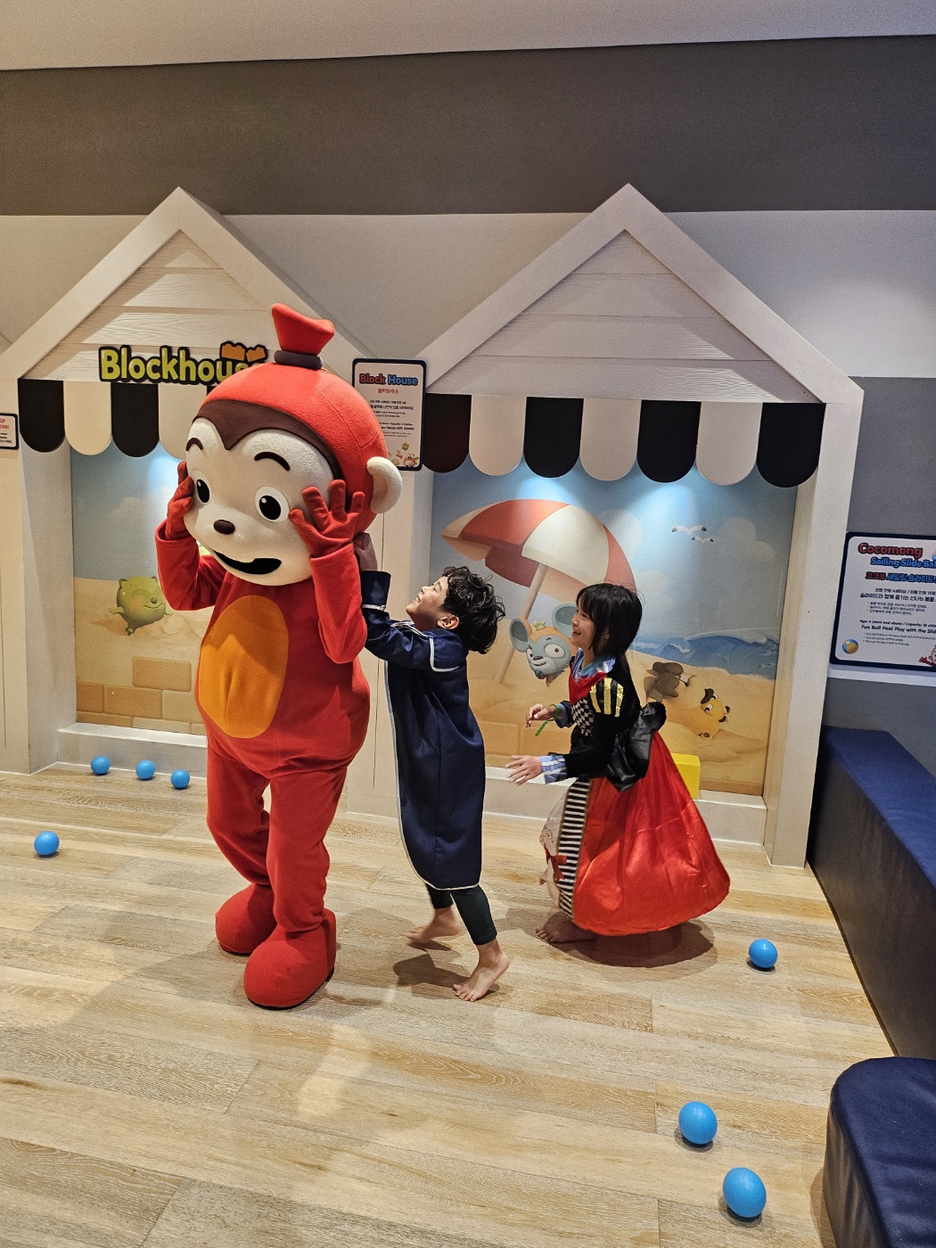 몰랐는데, 코코몽이 직접 와서 놀아주더라구요. 아이들과 볼풀도 던지고 잡기놀이도 하며 재밌게 놀아주었습니다. 그래서 정말 만족했고 애들이 생각보다 재밌어했습니다. 여기서는 미리 예약해서 수업을 받을 수도 있으니 유아를 동반한 가족들은 이용해 보시기 바랍니다.