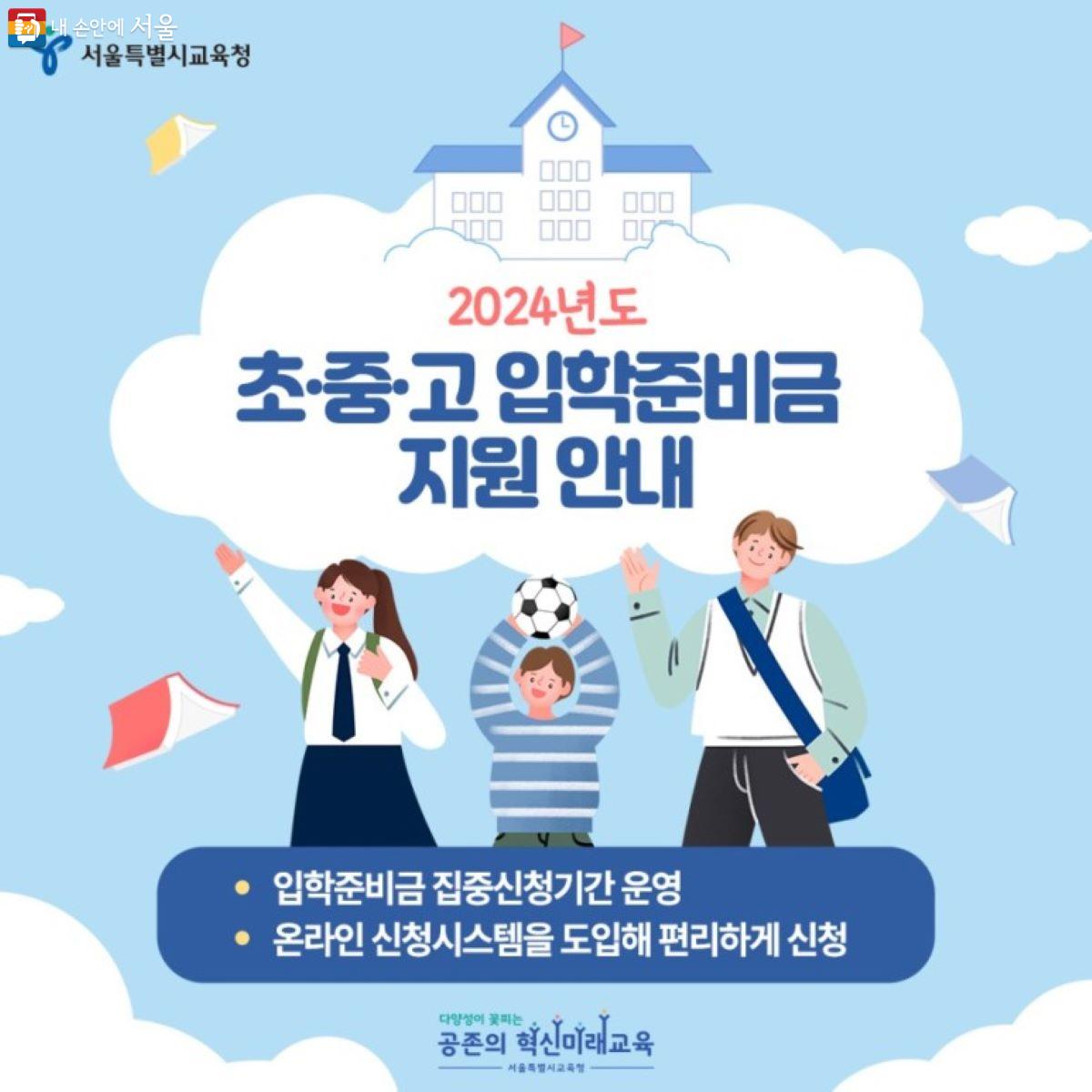 서울시에서는 초등학생 뿐 아니라 중, 고등학생도 입학준비금을 지원해주고 있습니다.
