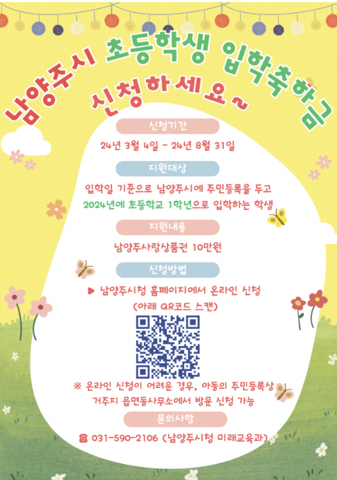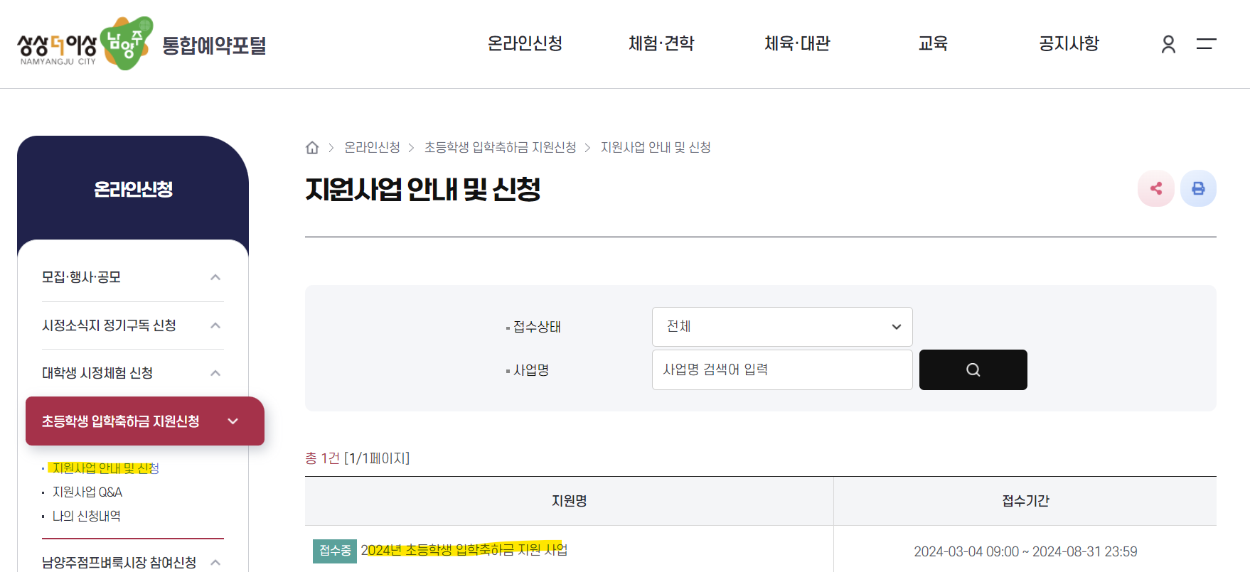 경기도 남양주시에서는 초등학생만 대상으로 입학지원금을 신청할 수 있습니다.