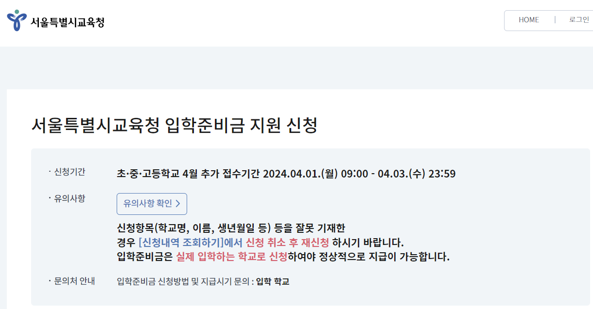 서울시 입학준비금은 입학 준비 기간인 2월에 이미 마감되었으나, 4월에 추가 접수기간이 있으니 이 시기 놓치지 말고 꼭 신청하시기 바랍니다.