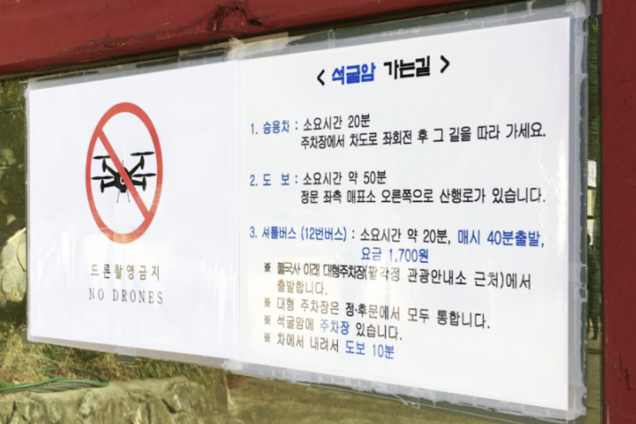 불국사에서 석굴암차로 20분, 도보로 한시간가량 소요되며 셔틀버스가 있고(유료: 요금 1700원) 매시 40분 출발한다고 하니, 시간이 괜찮으시면 석굴암도 들러보면 좋을 것 같습니다.