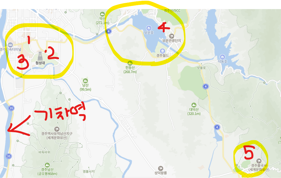 따라서 혹시 1박 2일 여행인 경우에는 1~3번 코스만 가시면 되겠고, 2박이나 3박 하실경우 불국사와 보문관광단지도 추가하시면 좋을 것 같습니다.