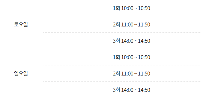 관람시간: 오전9시~오후6시(평일,공휴일,주말 동일) *입장 6시 마감, 퇴장 7시 마감