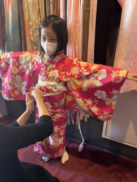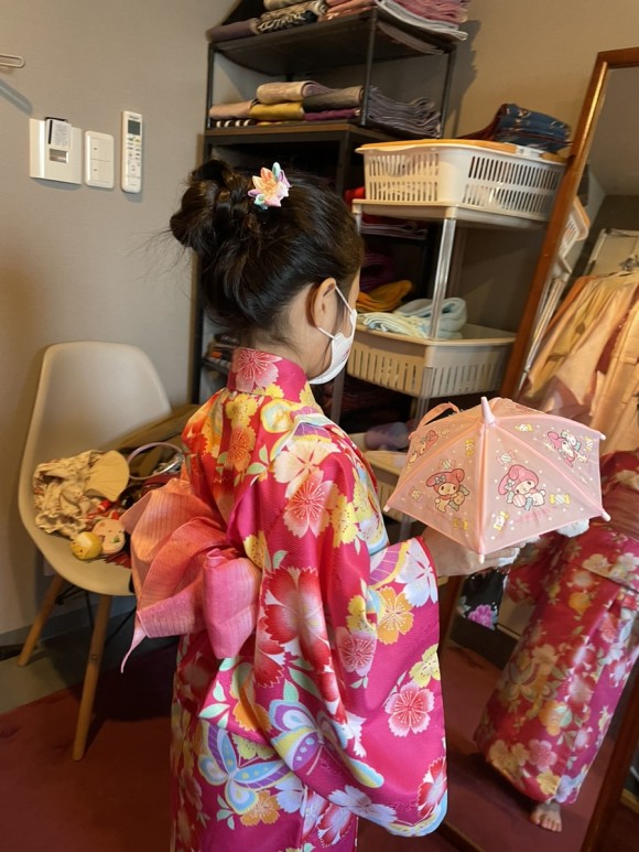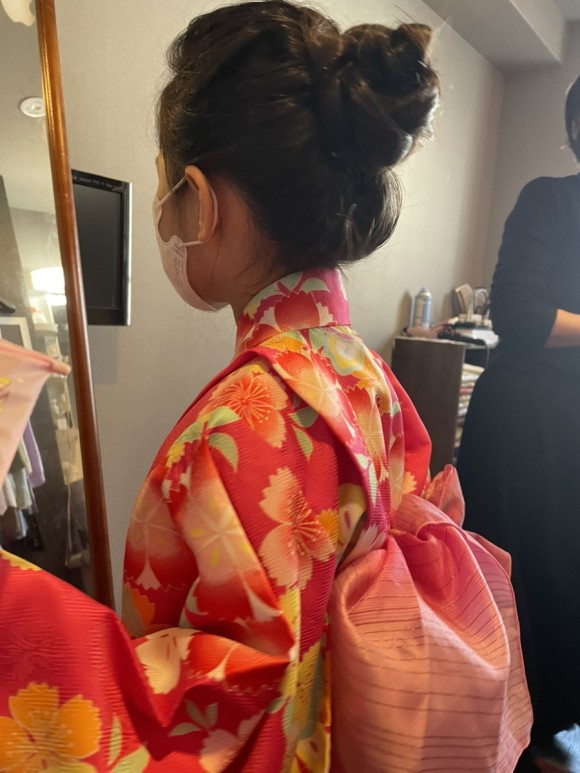다 입은 뒤, 뒤에 리본도 메고, 머리까지 하면 정말 인형이 따로 없습니다. 아이들이 기모노 입은 모습은 정말정말 귀여워요.
