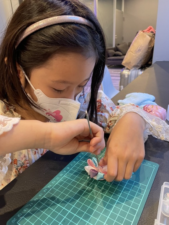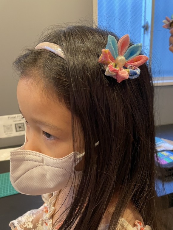 바로, 기모노 천으로 만드는 일본 전통핀 만들기 체험과 기모노도 같이 입어볼 수 있는 체험이었습니다.