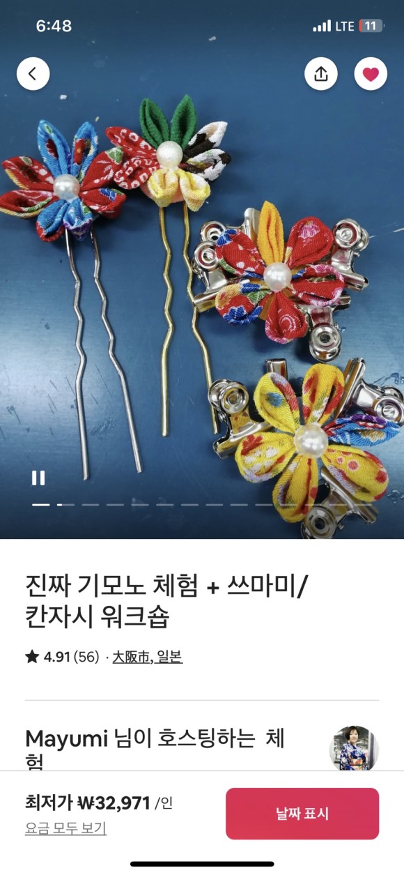 이번에 오사카와 교토 여행을 계획하면서 딸 아이와 기모노 체험을 꼭 하고싶었습니다. 그런데 기모노만 입는건 힘들기만 하고 아이에게는 재미가 덜 할것 같아서 고민하던 와중에 저희 딸이 딱 좋아할만한 만들기 체험도 같이 하는 체험을 에어비앤비에서 추천해줬습니다.