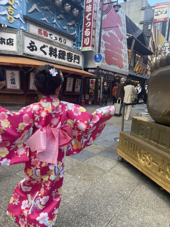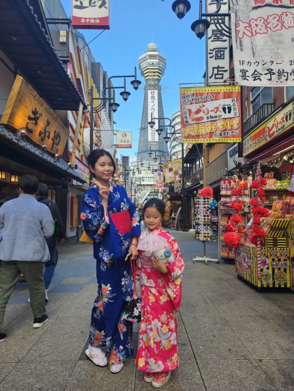 츠텐카쿠타워를 배경으로 사진을 찍으면 꽤 그럴싸한 기모노 일본 여행 인증샷이 완성됩니다.
