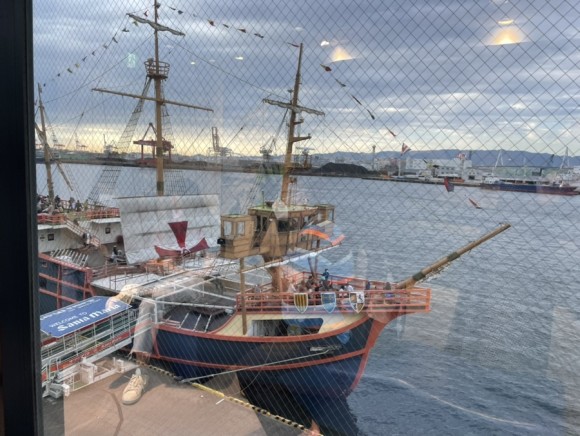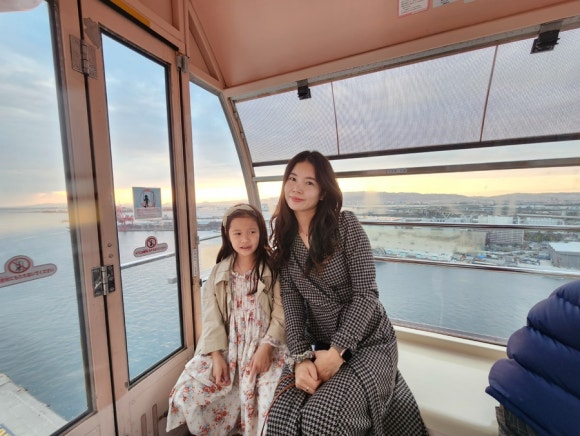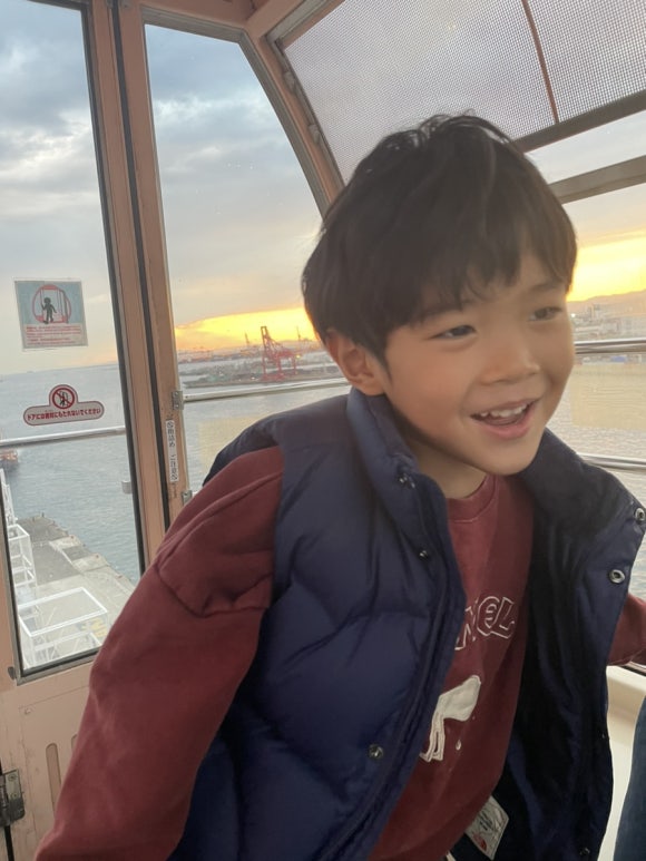 가이유칸 수족관에서 시간을 꽤 보낸터라 주유패스 가능 구간 중 하나만 관람하기로 했는데요, 저희 아이들의 픽은 대관람차였습니다. 높은 빌딩에 꽂혀있는 둘째 아들이 선택했어요. 저는 은근히 산타마리아호를 타고 싶었는데, 둘 다 타기엔 시간이 부족했습니다.