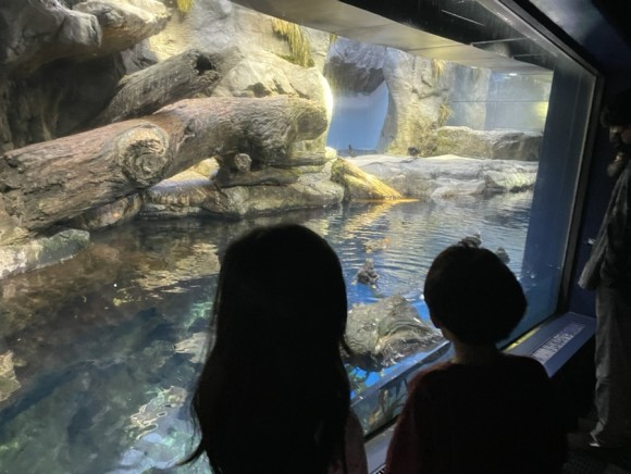 일본내에서도 큰 규모와 고래상어를 자랑하는 가이유칸 수족관은 아이들이 정말 재밌게 관람할 수 있었어요. 특히, 일본의 수족관이나 동물원을 들릴 때마다 드는 생각은, 자연 생태계의 모습 그대로 전시하려고 노력한다는 점이에요. 물 밖에 사는 포식자 동물들과 물 안의 동물들을 공존시킴으로써 어찌보면 잔인하리만큼 자연 생태계 그대로를 볼 수 있는 것 같아요.