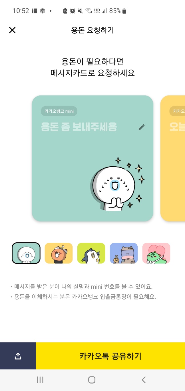5. 용돈 요청하기를 통해 용돈을 넣어놓고 사용한다. (카카오톡이 없다면 문자로 보내기 가능)