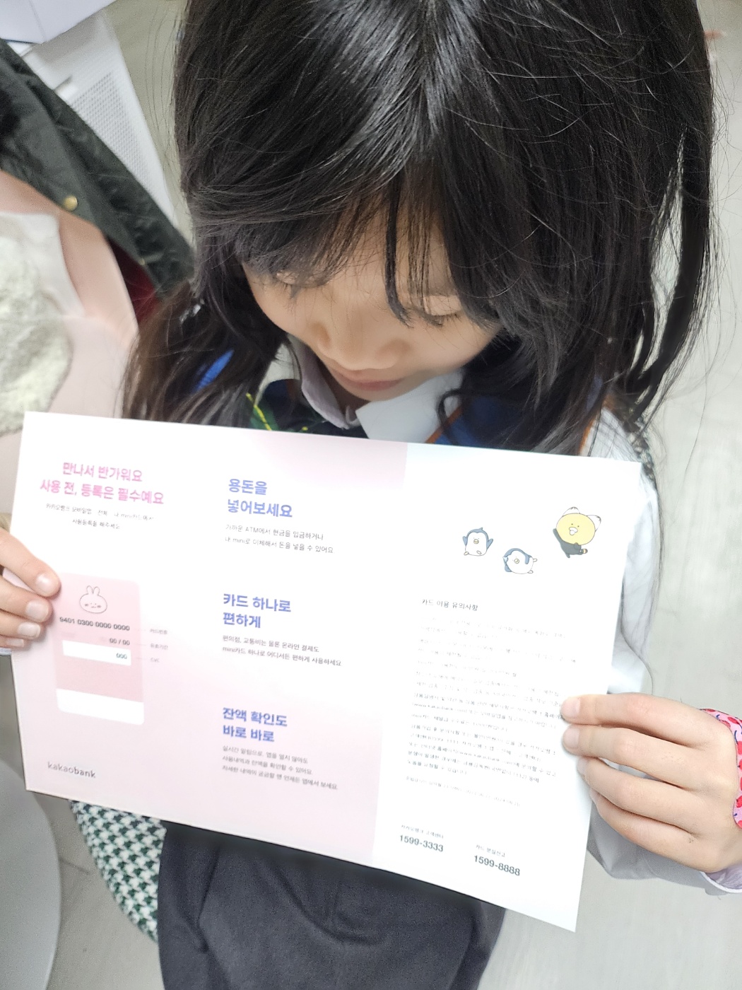 자신의 이름으로 발급한 카카오mini카드가 도착하니 아이가 참 좋아했습니다.