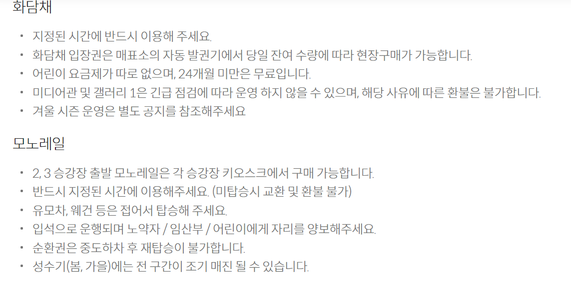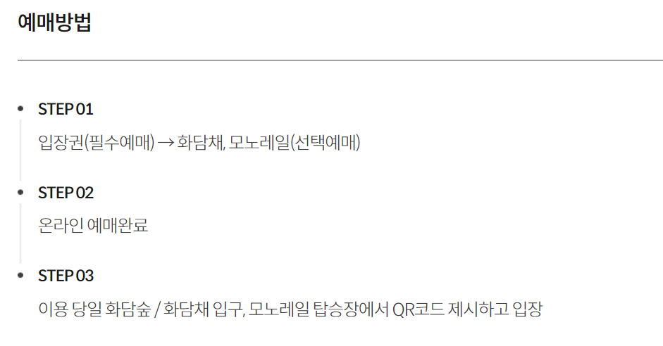 (입장권은 필수, 화담채와 모노레일은 선택사항입니다!)