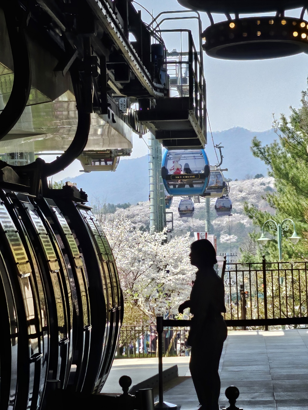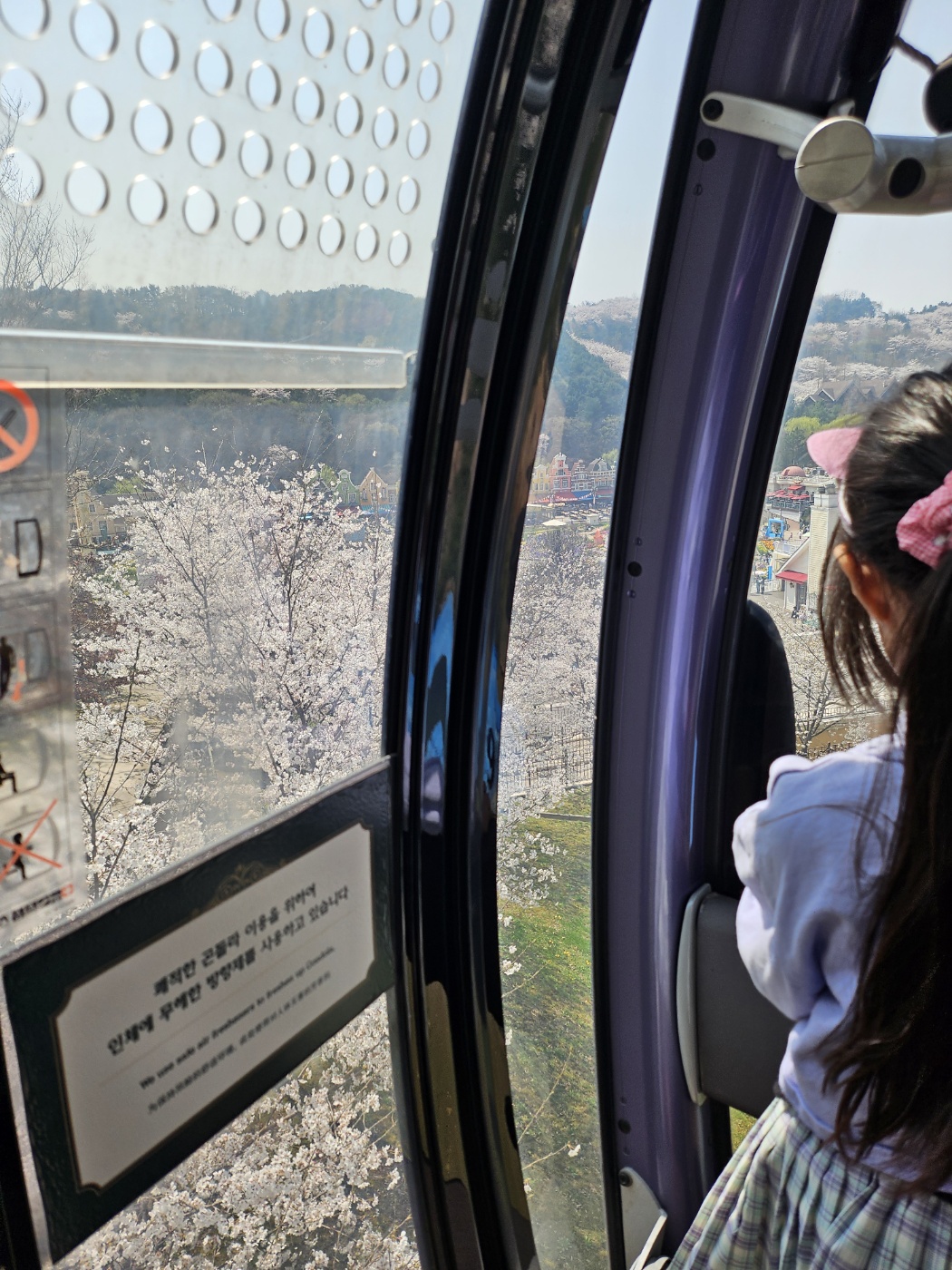 3. 바로 스카이곤돌라를 타러갑니다. 일요일 11시 반 입장하여 곤돌라는 여유있게 10분만에 탈 수 있었습니다. 그리고 타자마자 감탄! 벚꽃 정말 예뻐요. 안에서 사진은 잘 찍히지 않아서 못찍었지만 내려가면서 정말 예쁜 벚꽃 동산을 보실 수 있습니다.